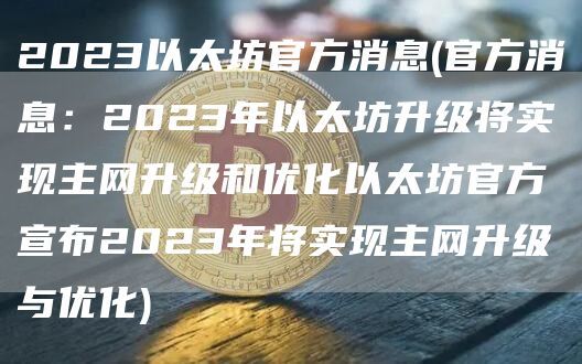2023以太坊官方消息(官方消息:2023年以太坊升级将实现主网升级和优化以太坊官方宣布2023年将实现主网升级与优化)