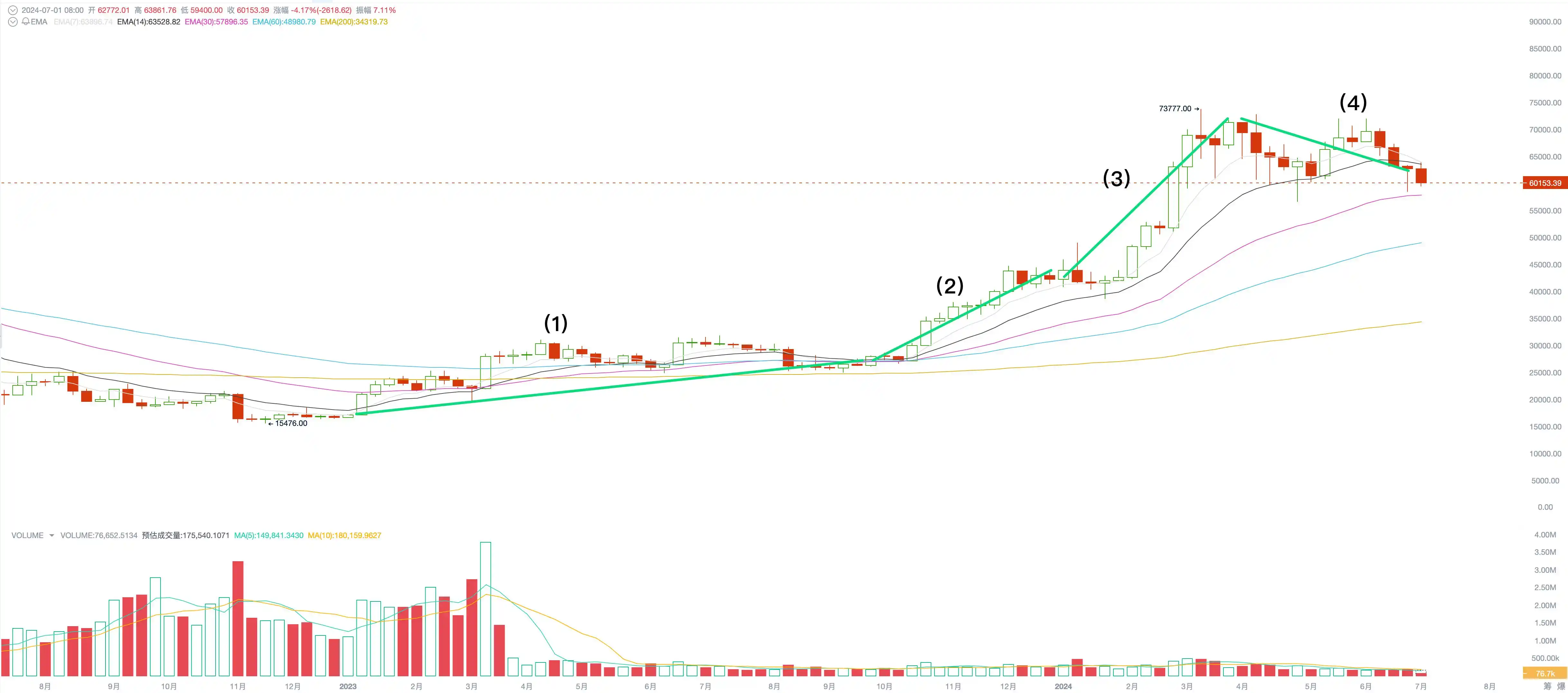 在刚刚过去的 2024 年上半年,场内长期投资者进行了第一拨抛售锁定了上百亿美元的利润,目前已重回积累。