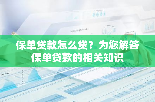 随着金融市场的不断发展,保单贷款作为一种创新的融资方式,越来越受到人们的关注,什么是保单贷款?保单贷款怎么贷?接下来,我将为您详细解答这些问题。