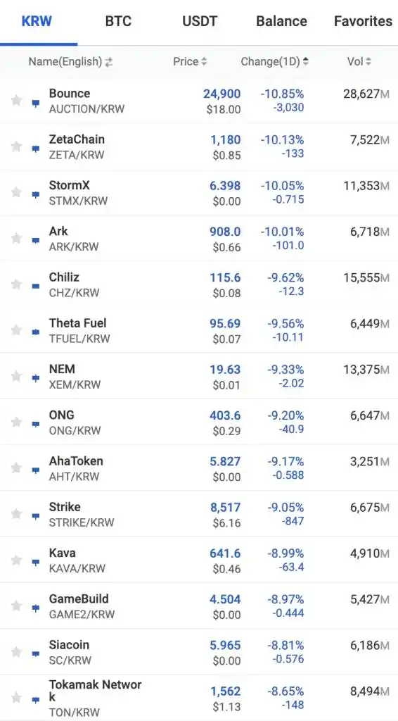 6 月 18 日,韩国社交媒体传言监管机构通知交易所「审查 600 多种加密货币」,随后韩国交易量最大的加密货币交易所 Upbit 一批上市代币的价格暴跌