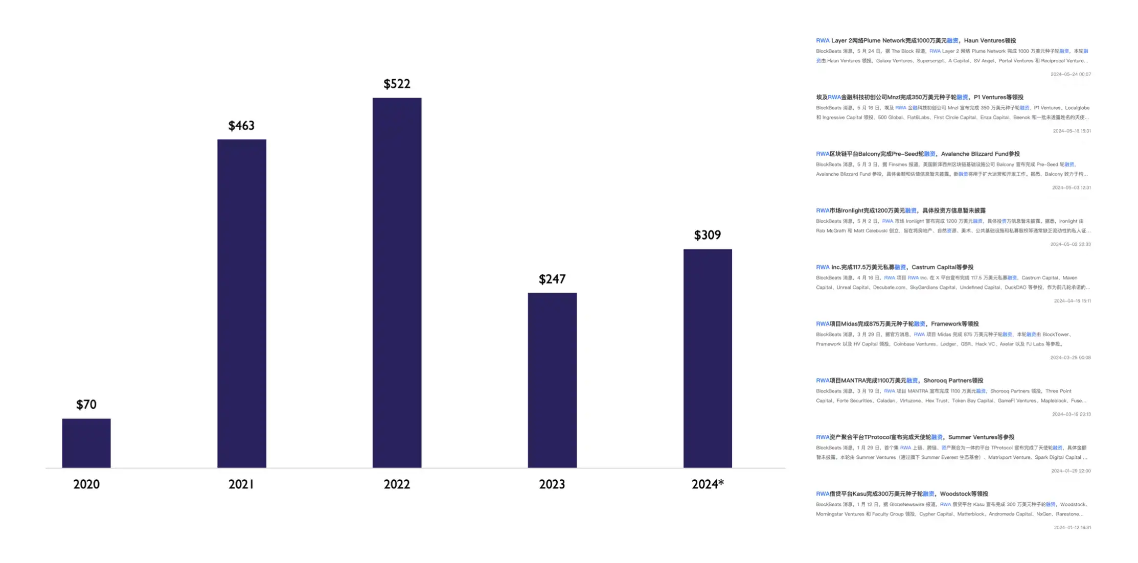 根据 The Block 的数据统计,RWA 赛道的总融资规模也在今年扭转下滑趋势,回升至 3 亿美元。当前 RWA 的趋势性复苏让不少创业者看到了新的「叙事机会」,市场上的 RWA 概念项目也在以肉眼可见的速度增加。然而,大多数获得融资的项目,往往都聚焦在特别小的垂直领域,比如自然资源、特定大宗商品以及艺术品等,而房地产领域的 RWA 项目在这一方面则尤为明显。