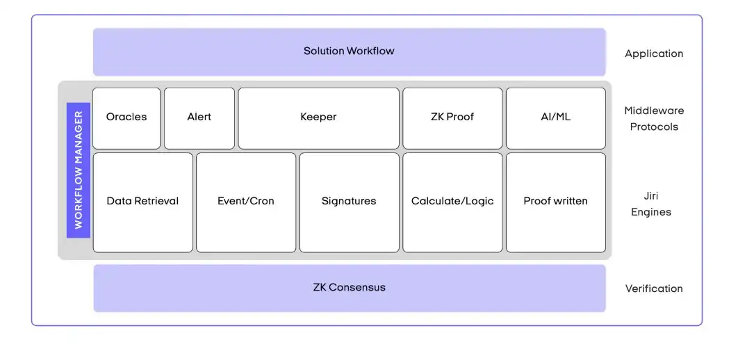 在共识机制方面,Jiritsu 引入工作流证明(PoWF)概念,网络中的节点运行由计算引擎和工作流管理器驱动的操作系统,利用生成的 ZK 证明来确保可验证计算和智能合同执行的共识机制,以将共识机制直接集成至其 MPC 框架中。与 ChainLink 或者 Pyth 等现有预言机相比,Jiritsu 不需要在汇总信息时使用跨链桥进行信息传递,同时还在简单的数据反馈外增加了对信息的分析和验证功能。