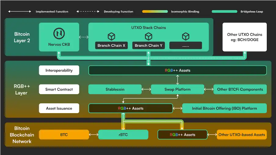 RGB Layer 是从 RGB 协议 升级而来的概念,代表了一个更高层次的抽象,它将同构绑定、智能合约能力和无桥跨链功能扩展到所有 UTXO 链。借助 RGB Layer,比特币生态系统必将进一步丰富。特别是,在 RGB Layer 的推动下,比特币金融(BTCFi)的兴起将引领比特币生态系统进入一个繁荣的新时代。