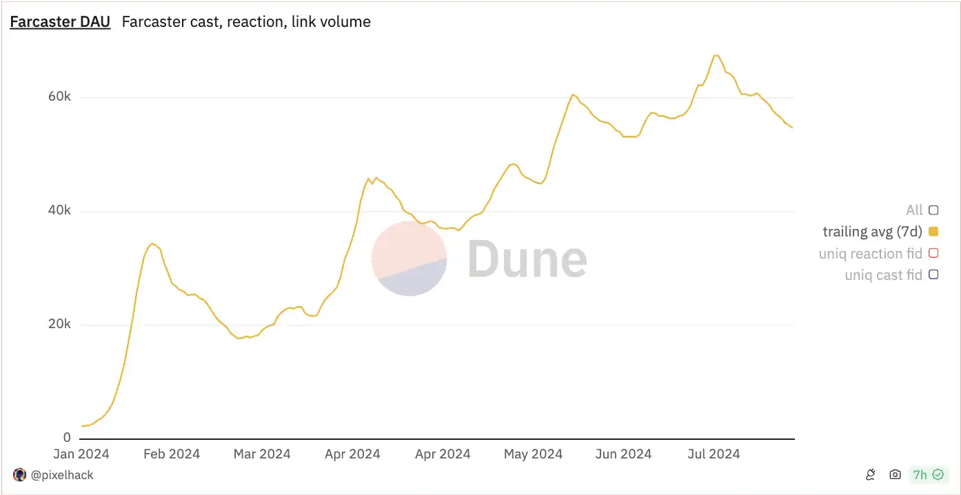 Anna Rose: 今年早些时候,有很多人转向 Farcaster,我也不例外,当时大家都在谈论这个,我就随大流了。我记得是在一月份或二月份。但自那以后,至少有一种说法是人们正在返回加密推特。我很好奇,从你的角度来看,趋势实际上是什么样的?一月份真的有一个大幅度的增长吗?是什么原因引起的?以及总体上的趋势是什么样的?