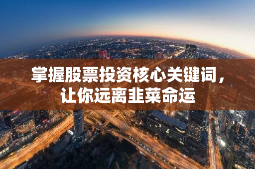 随着我国经济的快速发展,越来越多的人开始关注股票投资,希望借此实现财富增值,由于缺乏必要的知识储备和投资理念,许多人往往陷入盲目跟风、追涨杀跌的困境,最终导致血本无归,为了避免成为“韭菜”,我们需要掌握股票投资的核心关键词,从而做出更加明智的投资决策。