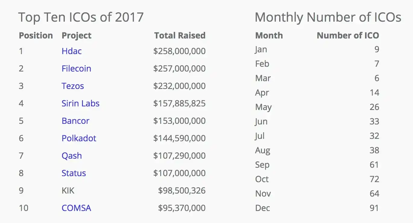 2017 年十大 IC0 项目