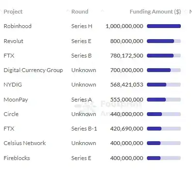 CeFi 领域融资排名一览