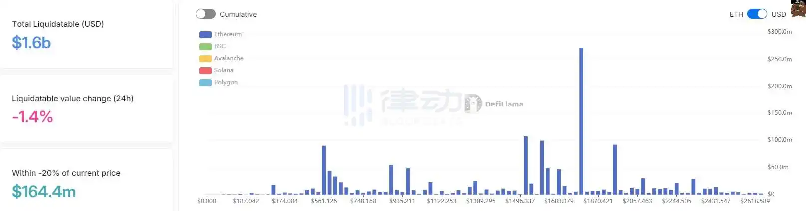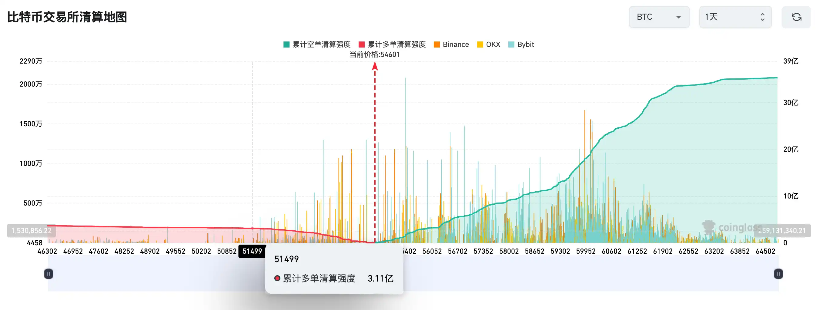 大幅下跌引发了链上链下大规模清算。据 DefiLlama 数据显示,以太坊于 2324 美元附近存在约 2910 万美元链上借贷清算额度。此外,若以太坊于当前价格下跌 20%,链上约有 1.644 亿美元借贷清算额度。据 Coingalss 数据,按当前主流 CEX 合约持仓情况,若比特币跌至 5.15 万美元附近,预计各 CEX 合约将有 3.1 亿美元多单清算。