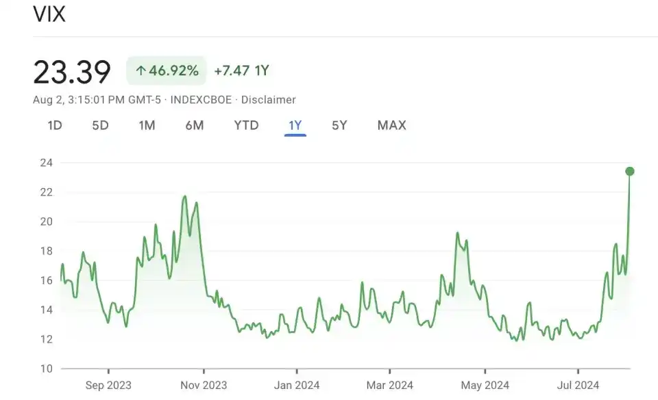 美股的这一轮下跌由权重股领跌,包括苹果、微软、亚马逊、谷歌、英伟达等万亿市值以上科技巨头公司,跌幅都在 3-5% 之间,资金大规模出逃的迹象明显。衡量市场恐慌程度的波动指数跳涨 23% ,为 2023 年 10 月以来的最高水平。