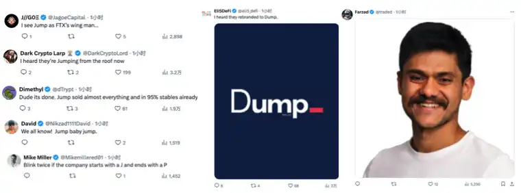 虽然没有明确指出名字,但社区内的猜测已经相当明确,矛头直指 Jump Trading 及其加密货币部门 Jump Crypto。社区用户们甚至调侃道,Jump 现在已经改名为「Dump」,以讽刺其可能正在大举抛售加密资产,甚至有人非常直接的放出了 Jump Crypto 前 CEO Kanav Kariya 的照片,暗指 Jump 就是市场大跌的原因。