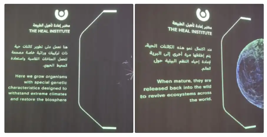 之后,你会看到各种其他科学技术领域的展品。其中一个主要主题是冥想和健康与保健,展示了使人们更容易进入替代精神状态的基础设施。最让我印象深刻的是生物技术部分,它展示了利用基因工程提高生物圈恢复力的愿景,使植物和动物能够在更多样化的环境中生存。