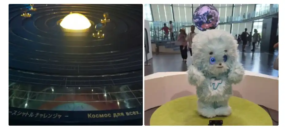 第一次进入 Miraikan 时,第一个展览是关于地球危机的:全球变暖,以及与污染物数量过高或基本资源数量过低有关的各种环境问题。紧接着,你会看到各种艺术形式的展览,其中大量使用人工智能,模仿我们在自然界中看到的各种模式。之后,一个巨大的球体重复播放一部名为「走进多元世界」的短信息片,展示了世界不同地区以及人们在不同地区生活的各种统计数据。之后,是一个动手展览,展示了基本的低级互联网协议的内部工作原理。