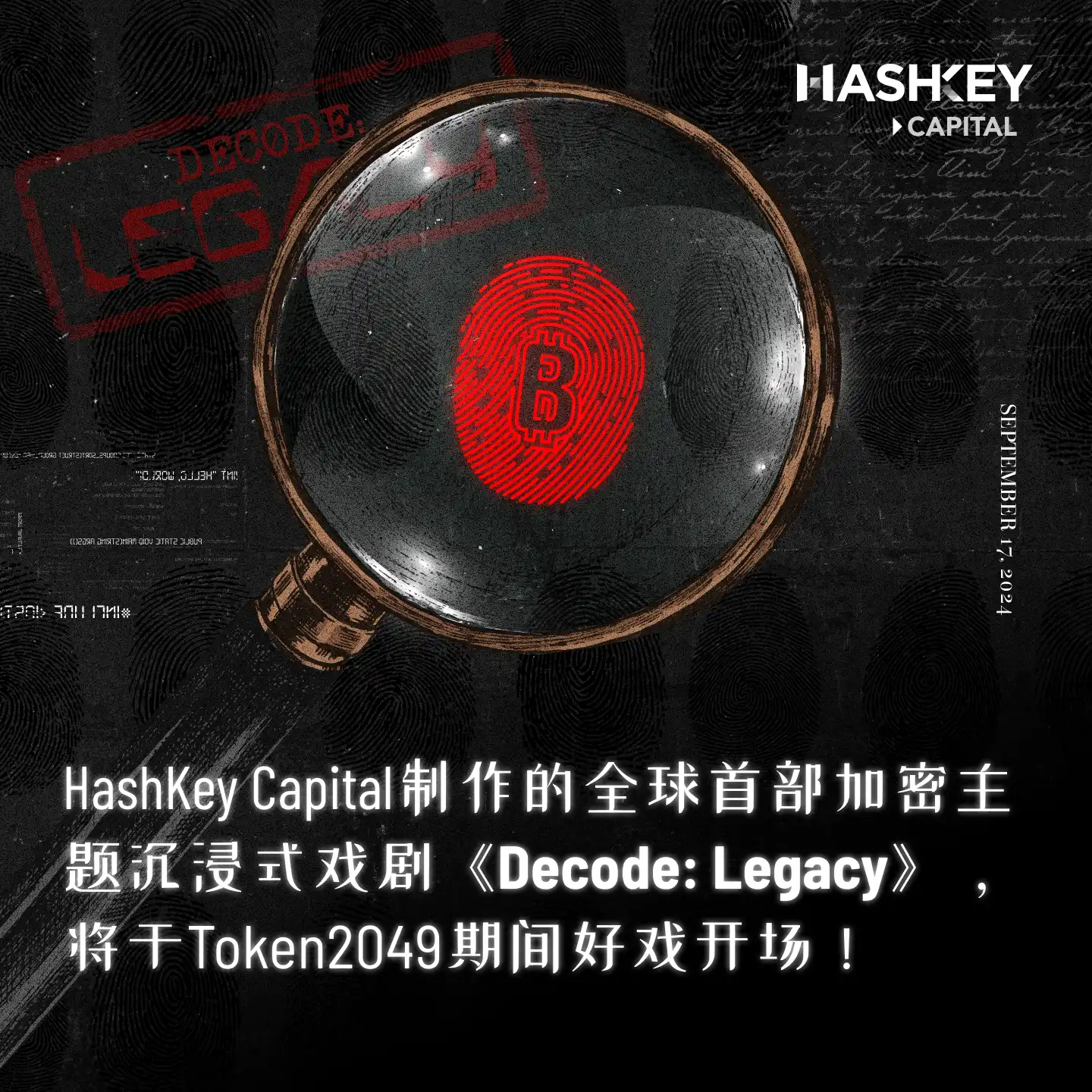 由 HashKey Capital 制作的全球首部沉浸式戏剧——《Decode: Legacy》即将于 9 月 17 日在新加坡历史最悠久的莱佛士酒店(Raffles Hotel)拉开帷幕。这场独特的现场体验将带领观众穿越 16 年的加密行业发展史,从比特币诞生到 ETF 获批,在围绕「中本聪宝藏」展开的剧情中体验一场互动式的神秘惊悚剧。