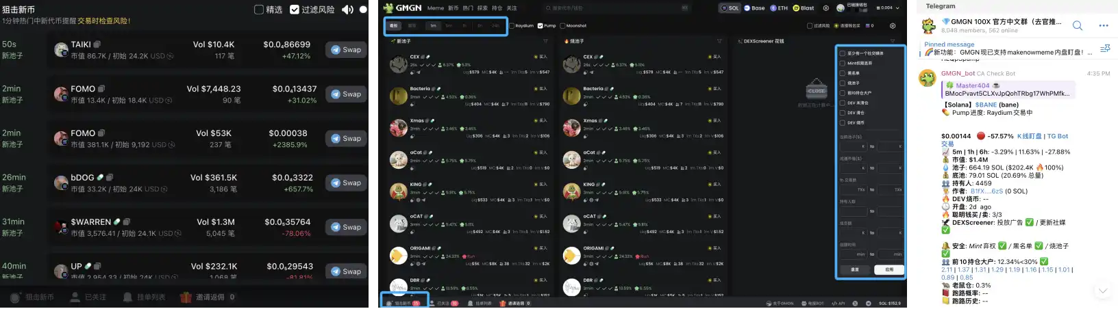 在「扫链」上,GMGN 和 Bullx 被使用的多一些。