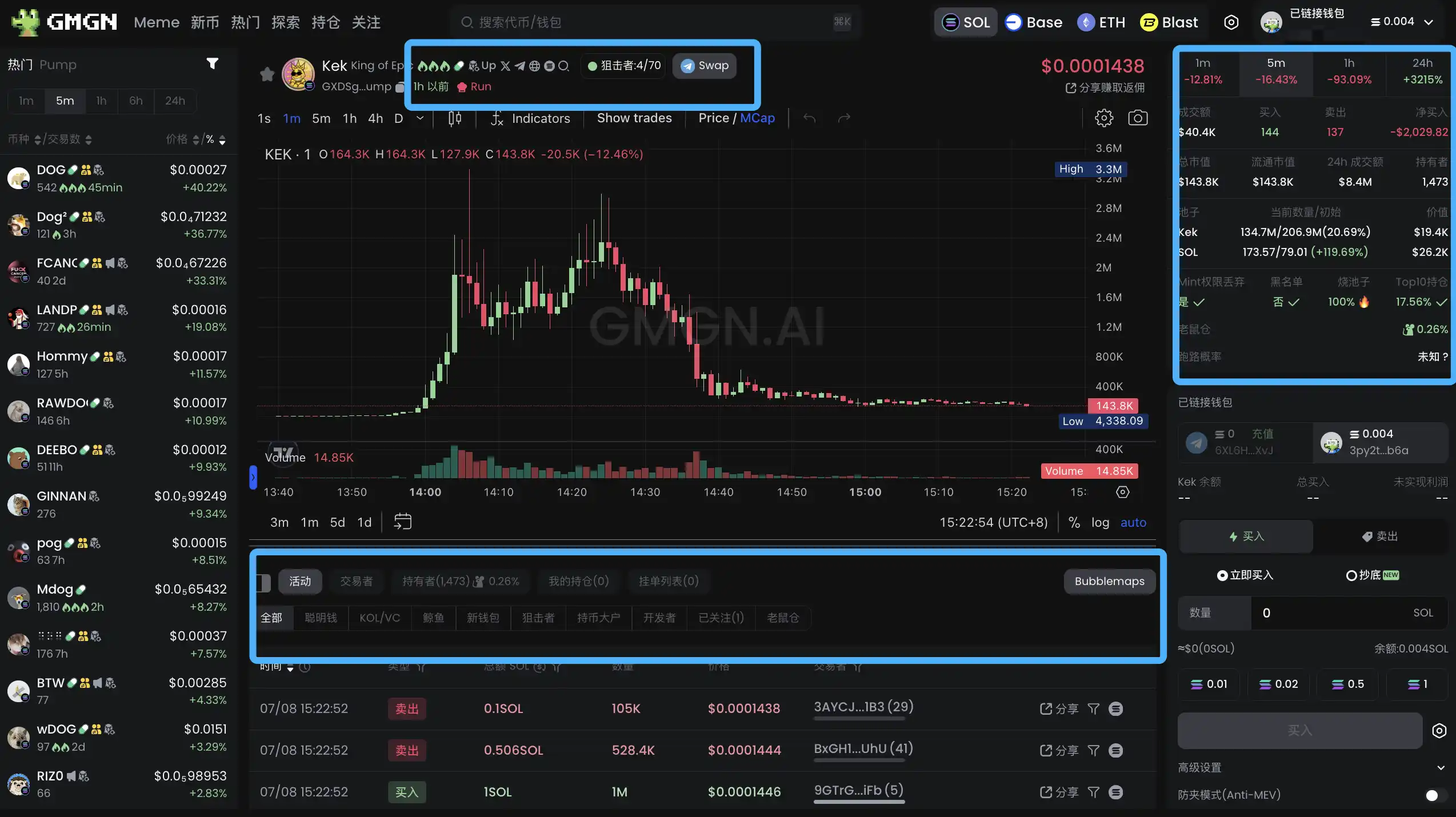 meme 市场有一些公开的聪明钱地址,如社区流传的高胜率地址、被机构标记的地址以及 KOL 地址。GMGN 基于统计对一些聪明钱地址进行了标记,但官方且公开的标记地址的参考意义不大,被公开的 KOL 地址也不能盲目跟单,meme 玩家需要建立自己的聪明钱关注列表,才能更好的在市场上生存下来。这个需求目前也可以通过 GMGN 和其他定制工具满足。