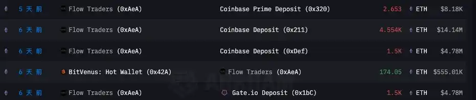 Flow Traders ETH 链上公开地址持仓量变化(来源:ARKHAM)