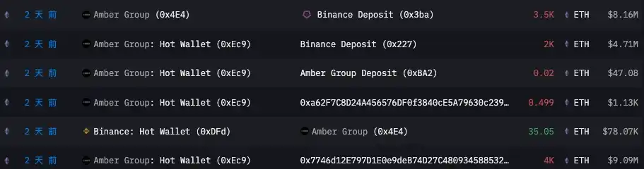 Amber Group ETH 链上公开地址持仓量变化(来源:ARKHAM)