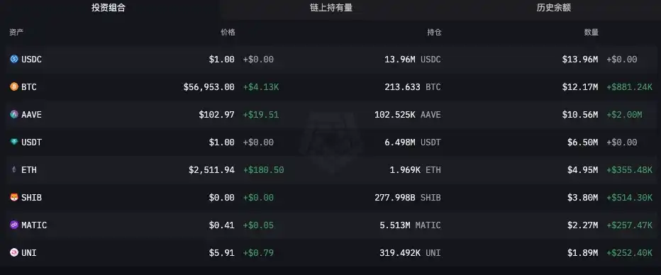 而在「 85 」暴跌发生后,根据 ARKHAM 数据,Wintermute 链上公开地址不仅没有大量减持,反而仍在增持。主要变化为:稳定币 USDT 和 USDC 持仓增长超 6200 万枚,WBTC 持仓增长 131.5 枚,同时还增持了 3298 千亿枚 PEPE 和 69 万枚 DAI。详细数据如下图所示。