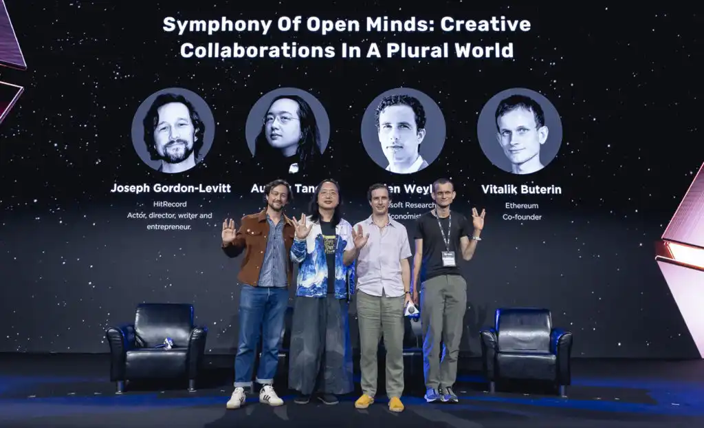 ABS 2024 亚洲区块链高峰会重点议程 Plurality Summit 在 8 日登场,好莱坞知名影星乔瑟夫高登李维(Joseph Gordon-Levitt)、前数位发展部部长唐凤、《激进市场》作者 Glen Weyl 、以太坊共同创办人 Vitalik Buterin 展开题为「开放思想的交响曲:多元世界中的创意合作」的对谈。