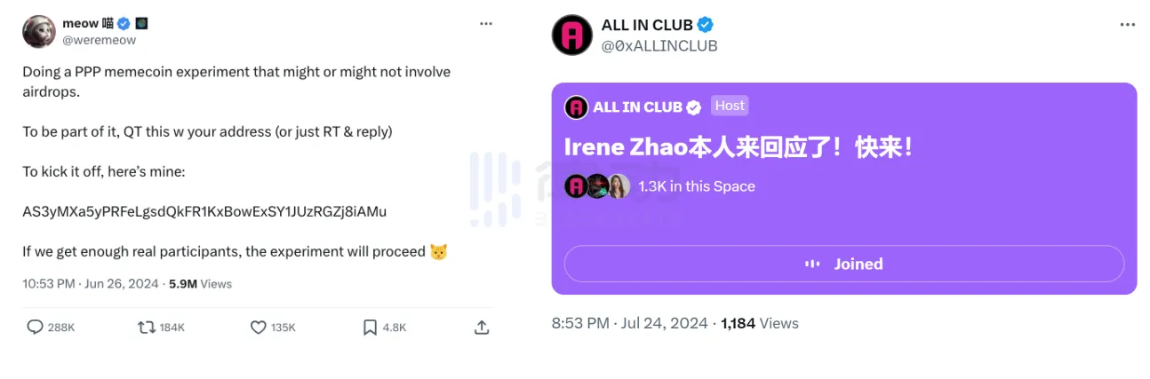 当 ZachXBT 指出合作方 Irene Zhao 曾多次参与诈骗项目后,Jupiter 毫无疑问成为了舆论中心,围绕 Irene 和 Jupiter 的话题热度只增不减。ALL IN CLUB 及时举办一场space,一度吸引了 1300 余名在线听众,甚至 Irene 现身说法,但社区的共识似乎并没有因为热度而加强。