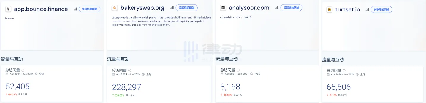 作为 4 月才正式上线,启动不足半年的平台,Jupiter Launchpad 流量与其余 Launchpad 平台相比可以说非常出色。去年底以「金铲子」红极一时的四大链上 Launchpad 平台——Bounce Brand、BakerySwap、Analysoor、TurtSat,但其访问量总和仅 35.5 万次,约为 Jupiter 的十分之一。