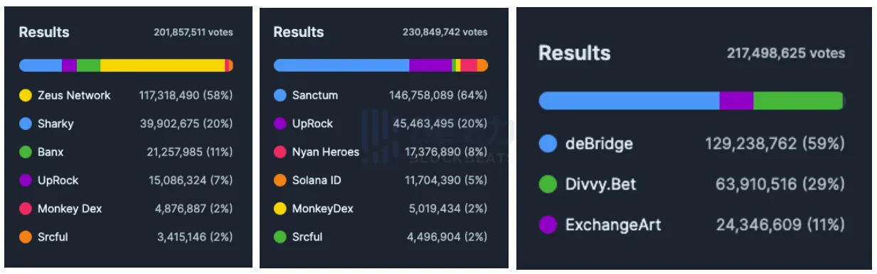 此外,比较同期竞选项目,优胜项目 Zeus 和 Sanctum 都具备超强融资背景。加密韦驮向 BlockBeats 解释道,「散户的投票逻辑被 VC 和 CEX 影响,认为只有 VC 背书的宏大叙事才有希望上大型交易所。」