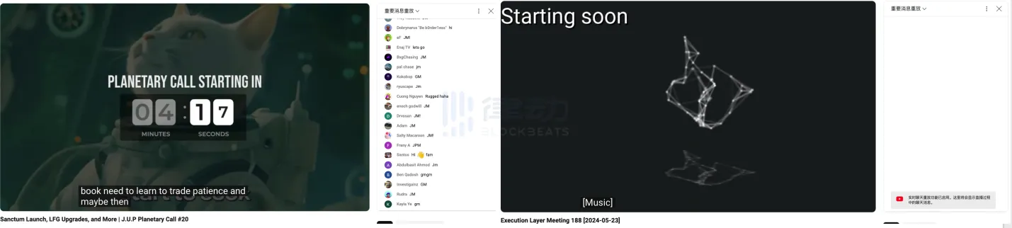 左图为 Jupiter YouTube 直播栏目,右图为第 20 期 Jupiter 行星会议的 Twitter 直播