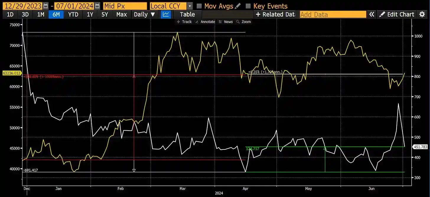 山寨币是高 Beta 比特币的加密玩法。但在这个周期中,比特币和以太坊现在在美国上市的交易所交易基金 (ETF) 中有结构性买入。尽管比特币和以太坊自四月以来有所回调,但它们逃过了山寨币市场的惨败。山寨币的季节只有在比特币和以太坊分别突破 70,000 美元和 4,000 美元后才会回来。Solana 也将超过 250 美元,但考虑到相对市值,Solana 的上涨对整个加密市场财富效应的影响远不及比特币和以太坊。到年末,受美元流动性驱动的比特币和以太坊的反弹将为性感山寨币派对的回归奠定坚实基础。