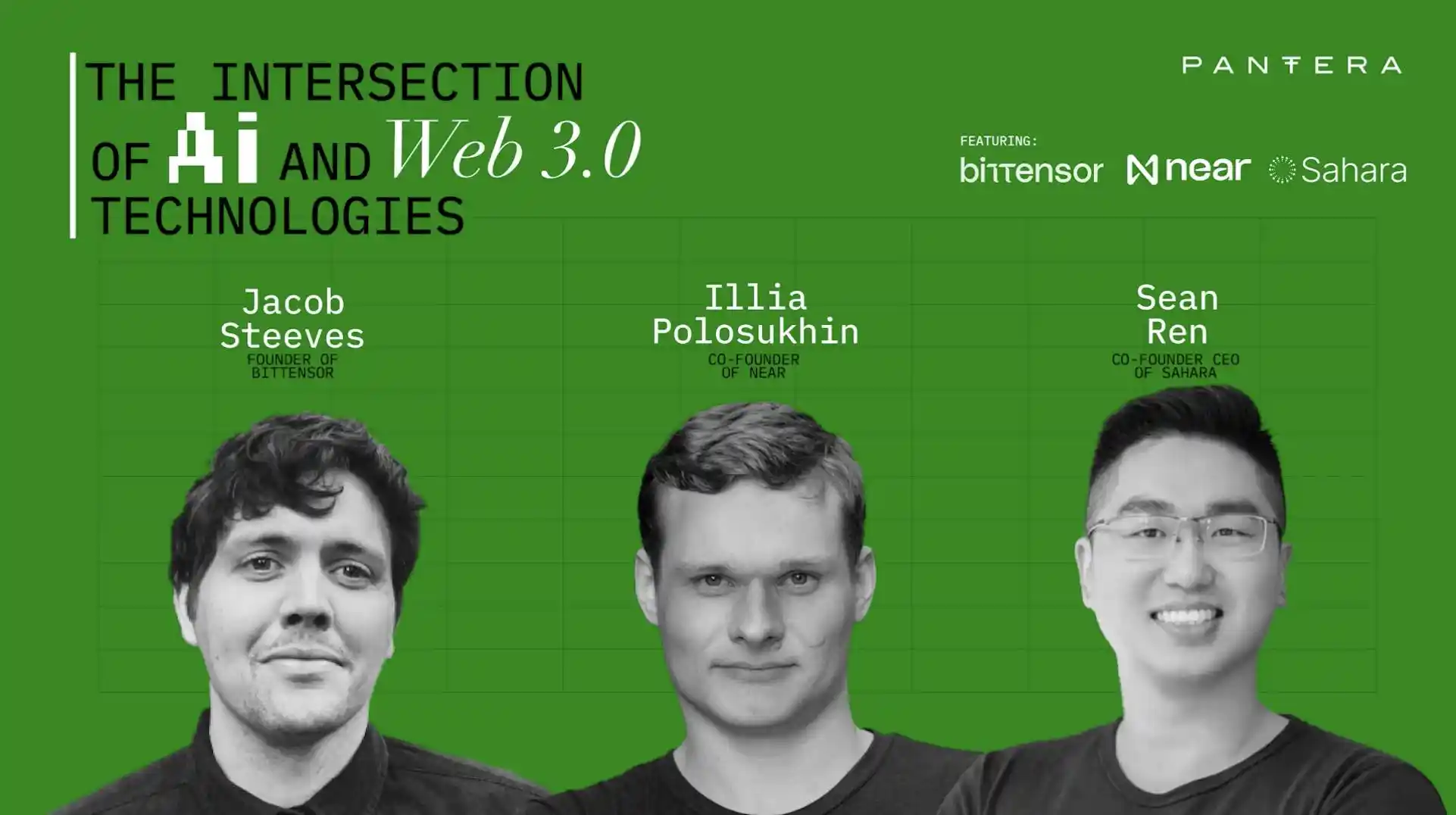 · 本次讨论的主题是人工智能(AI)与 Web3 的结合,探讨了这两大领域如何相互促进和解决当前存在的挑战。讨论由 Pantera 研究部负责人 Matt Stevenson 主持,参与者包括 Near Protocol 联合创始人兼 CEO Ilia Pellun、BitTensor 核心开发者 Jacob(也称为 Const)以及 Sahara CEO 兼联合创始人 Sean。