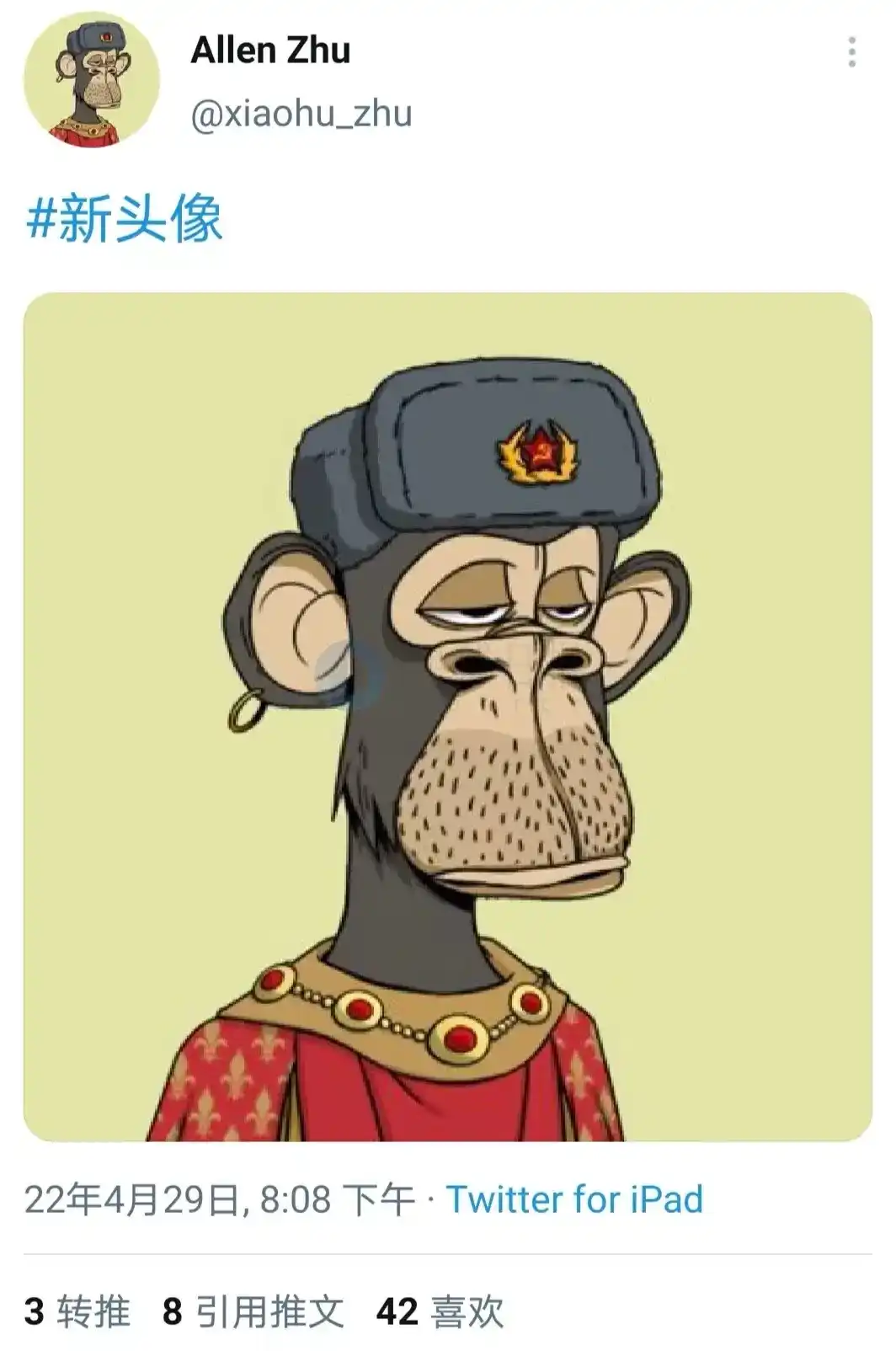 金沙江创投管理合伙人朱啸虎购入 BAYC#9279 被视为「见顶信号」