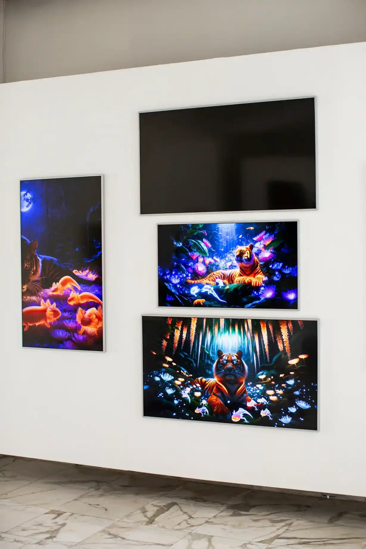 上个月,Pierce 在圣胡安散步时,试图用视觉展示他在波多黎各的成功。他带领两名《纽约时报》记者来到他于 2019 年购买的一栋建筑,里面陈设简单,电视屏幕额外显眼。他宣称,这栋建筑内设有世界上第一家 NFT 艺术画廊。「你可能不会想到波多黎各会是世界上第一个在科技领域开创先河的地方,」他说。展出的图像包括一只荧光恐龙,栖息在一片巨大的仙人掌森林中,Pierce 说这是他 5 岁的女儿使用人工智能工具设计的。