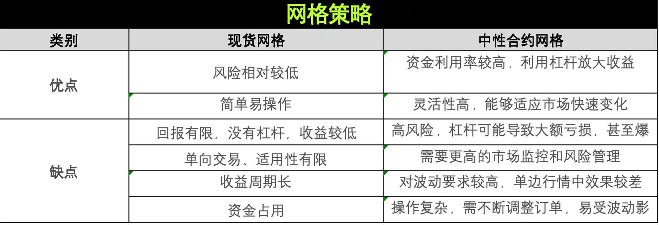 中性合约网格格策略可能更适合风险承受能力较高、对市场有深入理解的投资者。现货网格策略可能更适合风险承受能力较低、追求稳定收益的投资者。