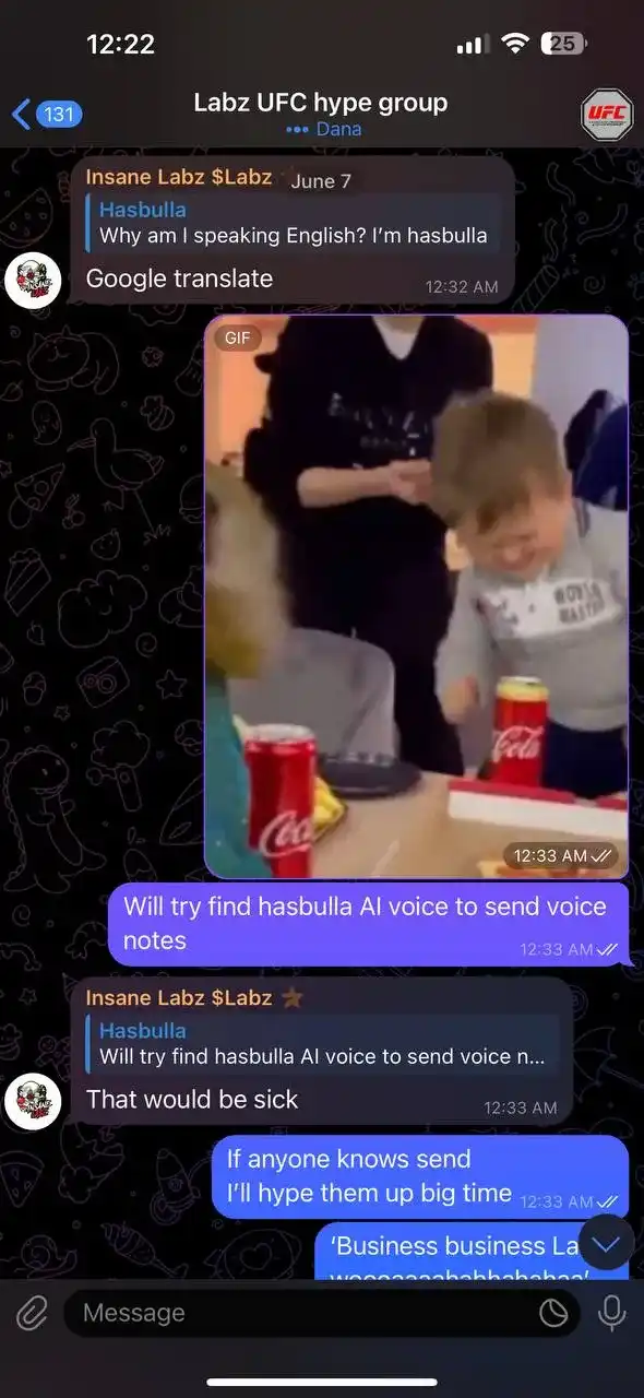 「Hasbulla」进入聊天,有投资者质疑是否真是 Hasbulla