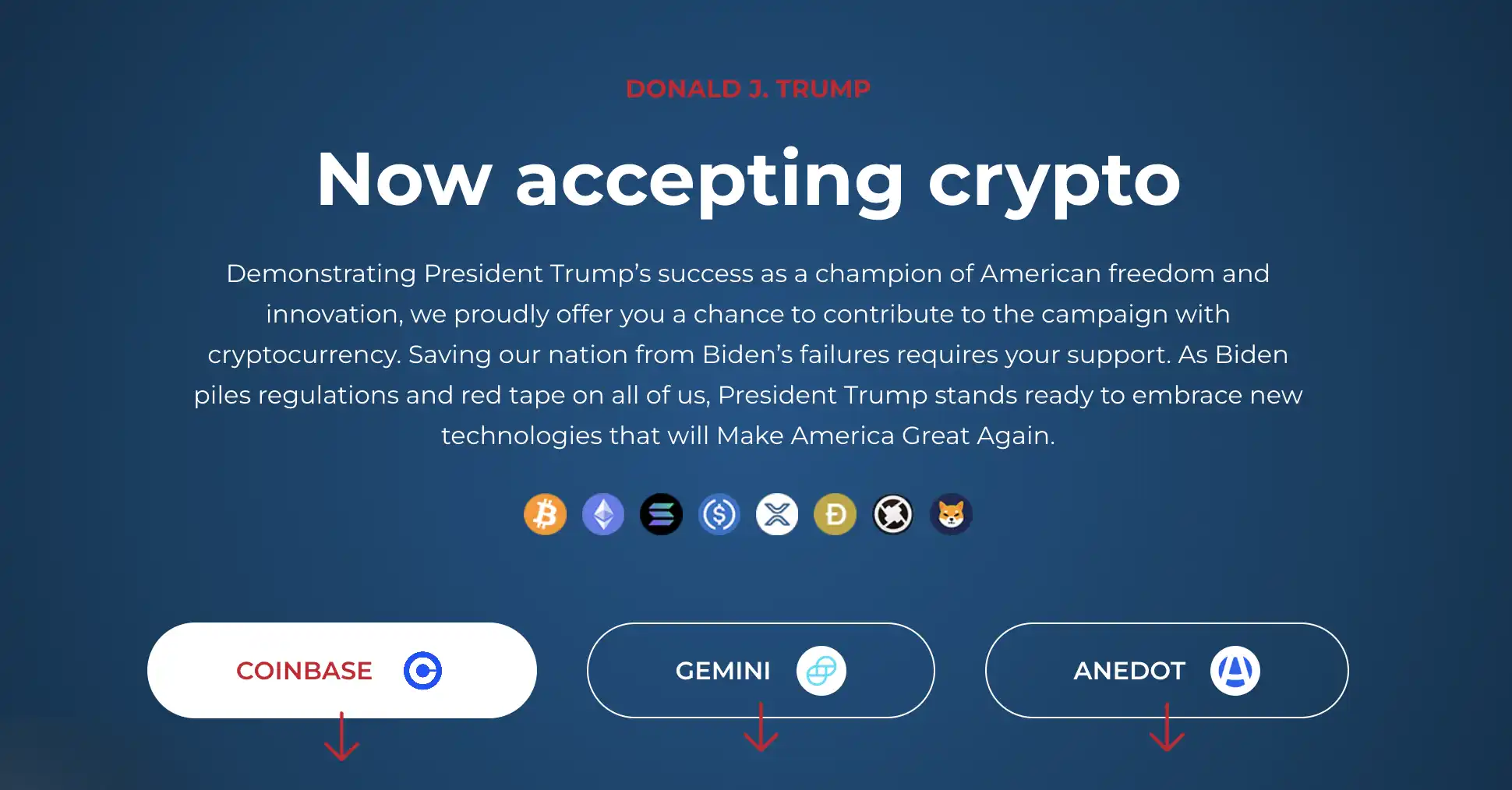 Coinbase Commerce、Gemini 和 Anedot 都在处理向特朗普国家委员会的链上捐款。以下是属于特朗普国家委员会捐款的加密货币地址。