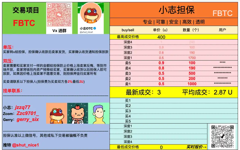 4. 市场上买水:从以上几个领水渠道领到的水,可以说是微乎其微,如果需求量比较大,有条件的朋友可以在网上找到更多教程自己挖水,没有条件的朋友也可以在一些靠谱的 OTC 群里买到水,从小志 OTC 的价格来看,截至目前 1 个 FBTC 的价格是 0.5 刀。