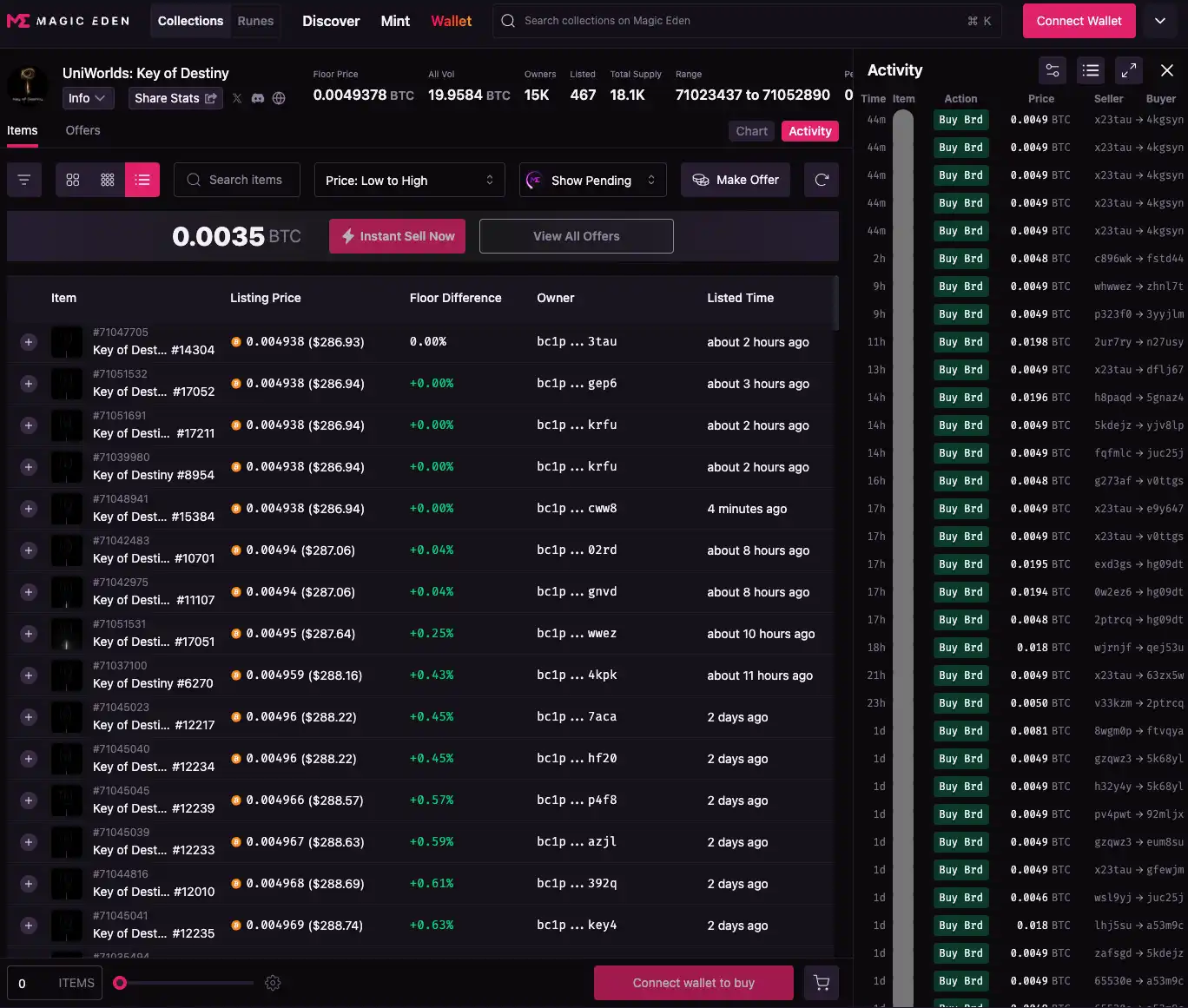 密钥(Key of Destiny):这是另一种重要的参与方式,密钥不仅赋予持有者治理和挖矿的权利,还与 Fractal 上的多个功能紧密结合。Key of Destiny 可以被视为进入 UniWorlds 元宇宙的特殊通行证。目前 Key 的地板价目前约为 0.0049378 BTC(约 300 美元)。