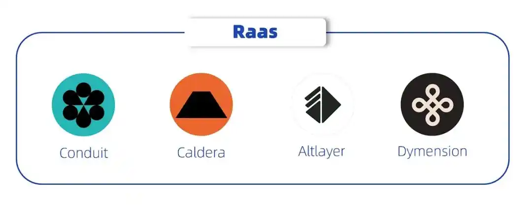 虽然 Rollup 框架为应用提供了强大的扩展能力,但选择和实施合适的框架并不容易,特别是在应用链上线后进行更改会更加复杂。因此,像 Altlayer、Caldera 和 Conduit 等 RaaS(Rollup As A Service)平台的出现显得尤为重要。这些平台类似于 SaaS,但专注于 Rollup 解决方案,能够帮助 dApps 快速选择不同的 Rollup 框架,简化应用链开发过程中的复杂步骤,提供定制化的核心特性,并支持应用上线后的维护和优化。