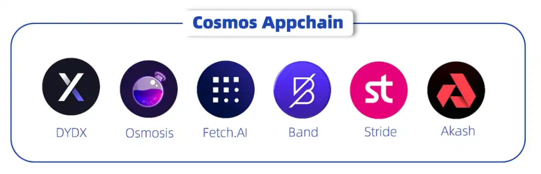 谈到应用链的起源,我们必须提到一个开创性项目 Cosmos。Cosmos 以其模块化和可插拔的设计理念而闻名,将虚拟机和共识引擎分离,允许开发者自由选择构建虚拟机的框架,并能够自定义共识引擎的关键参数,如验证者数量和 TPS 等。这种设计使各种应用能够以独立链的形式存在,并在灵活性和主权性方面展现出独特优势。这些创新理念使得 Cosmos 在应用链的探索和实践方面做出了重要贡献,为这一领域奠定了坚实的基础。