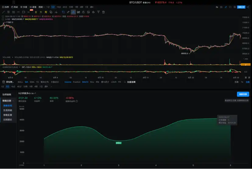 做多 DCA:在市场启动时开仓买入,当市场下跌时进行补仓操作,最多可补仓 5 次,并且第 5 次补仓时设置止损线。当市场反弹并上涨至目标价位时,进行一次性卖出以获取收益。