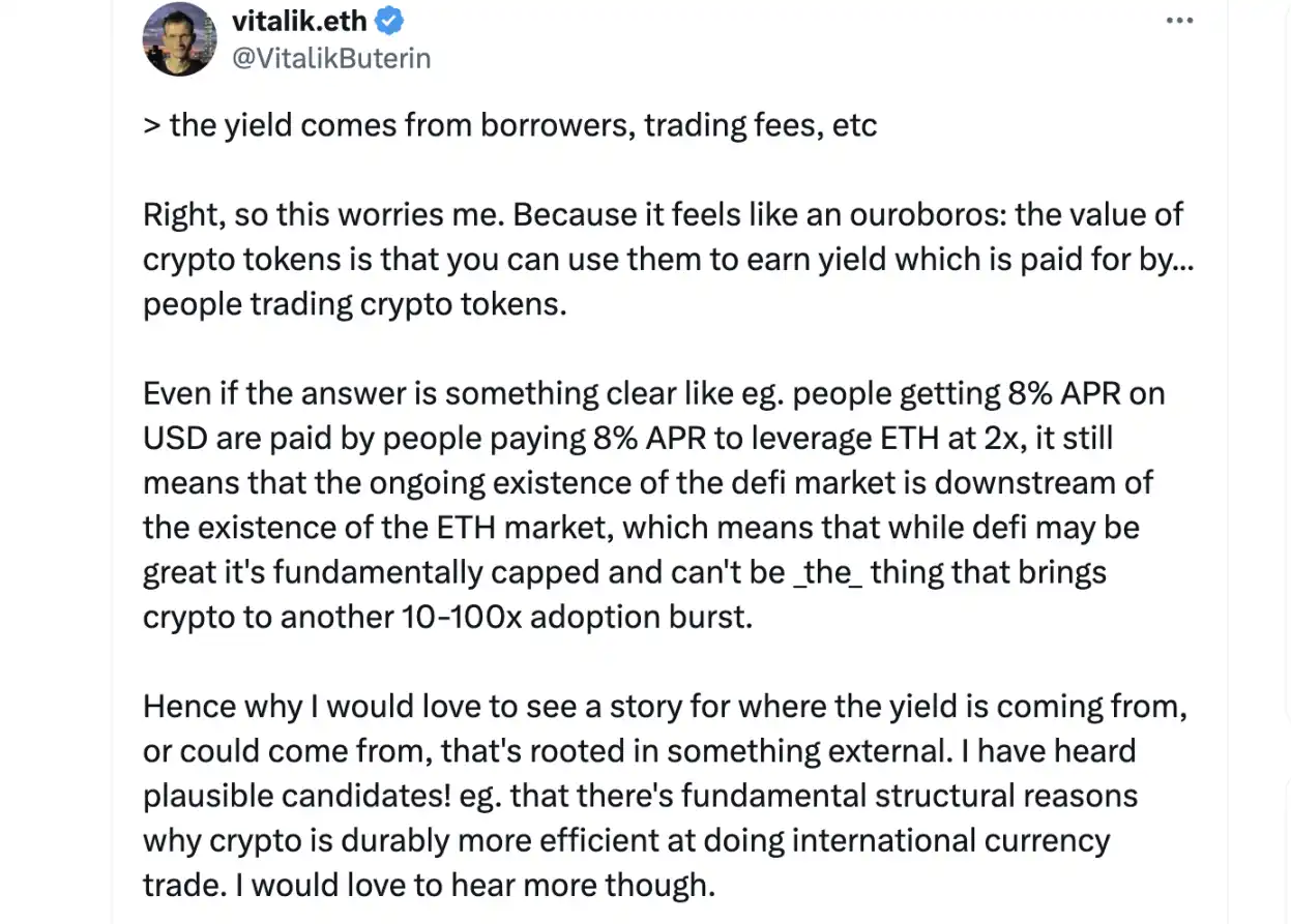 「Vitalik,我认为人们对你对 DeFi 的看法感到困惑或沮丧的原因之一是——沟通不畅: