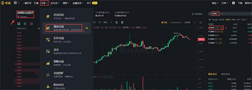 3、根据提示依次选择【交易】--【现货交易】,在右上角搜索框搜索XMR,选择XMR/USDT交易对