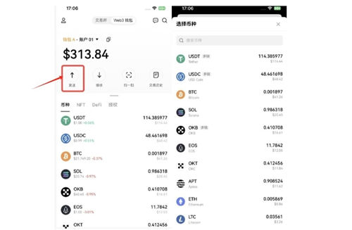 4、打开Web3钱包首页,点击发送,选择您想要充值的币种。
