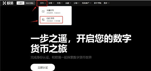 2.在这个页面中,我们可以看到有快捷买卖和C2C交易这两种选项,其中C2C交易就是自选买币和卖币