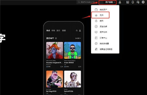 1、登录火必交易所 - 没有账号的投资者可以点此注册账号进行交易,选择首页资产管理,选择充币