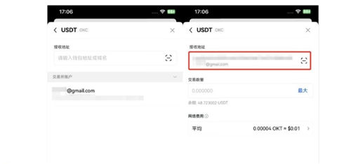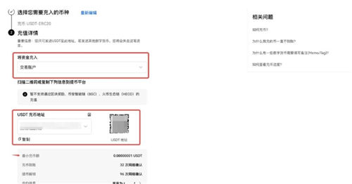 5、选择正确的充值地址,输入充值数量以完成转账。