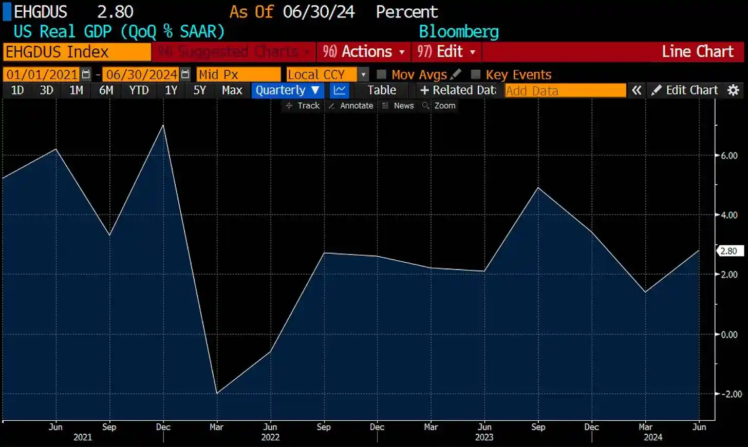 即使是最近对 2024 年第三季度实际 GDP 的估计也达到了 2.0%。再一次,这并不是一个受到过度限制性利率影响的经济。