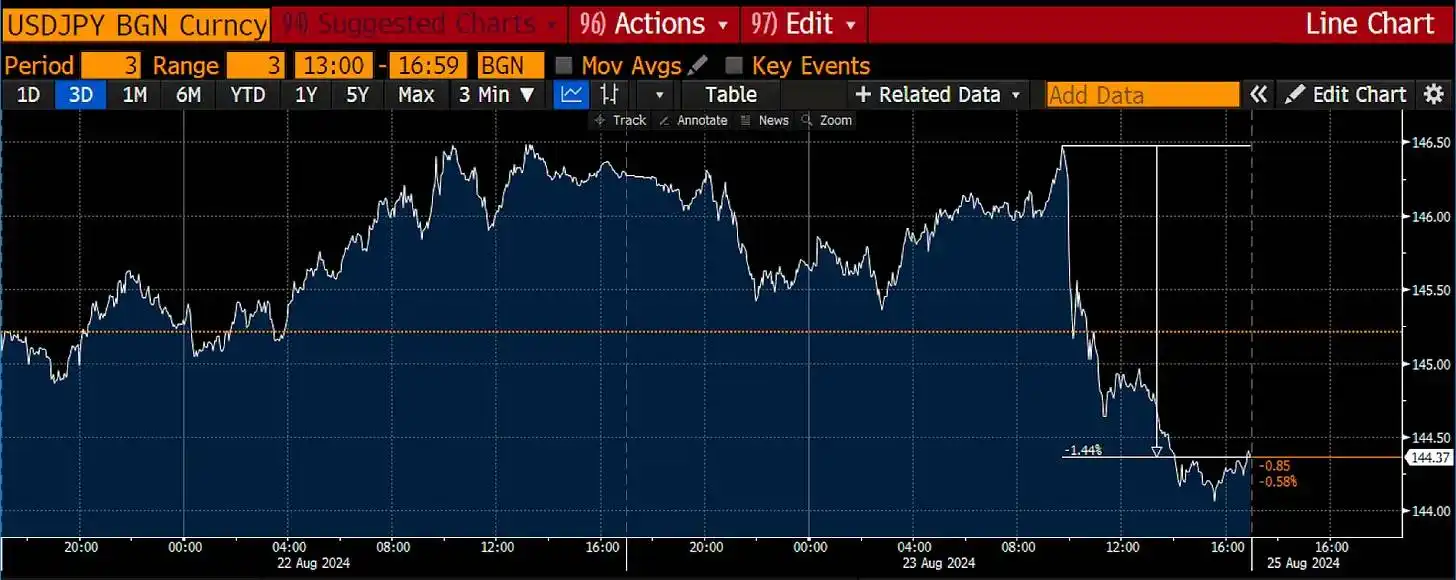 这是之前的美元/日元图表。我想再次强调,日元在鲍威尔确认 9 月降息后获得了强劲支撑。
