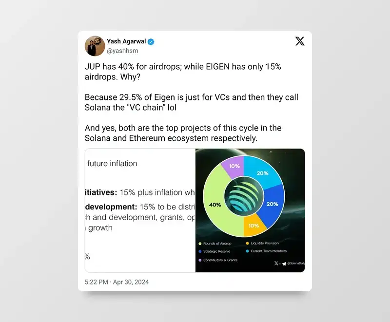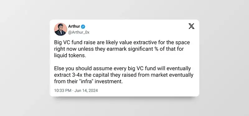 散户出现新一波反 VC 币情绪是有原因的,更多的 VC = 更多高 FDV、低流通量的基础设施。