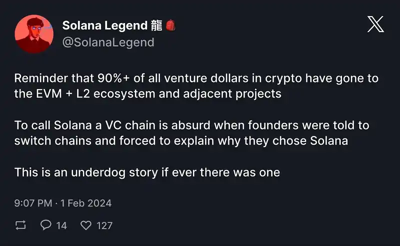 · Solana 的 VC 生态系统不完整;