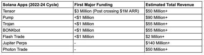 但 Solana 上的应用程序不需要太关心基础设施,基础设施由 Solana 基础设施初创公司(如 Helius/Jito/Triton 或其他协议集成)负责。一般来说,应用程序不需要很多的资金就可以启动,例如 Uniswap、Pump.fun 和 Polymarket 等。